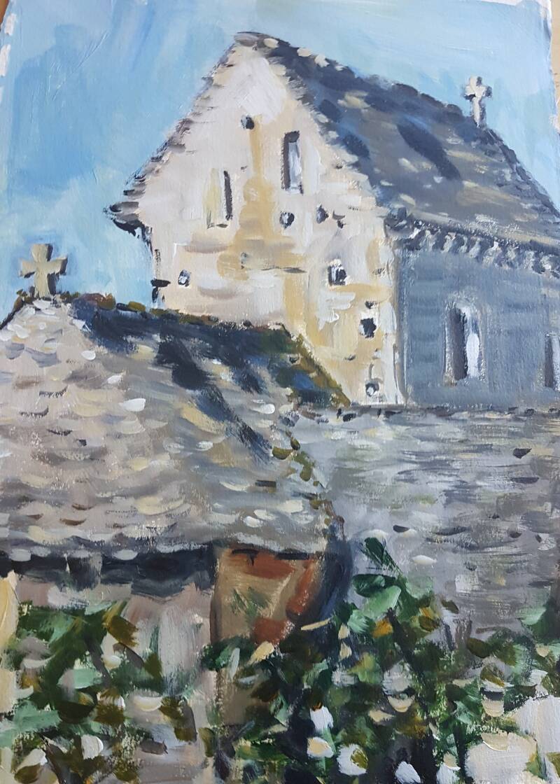 2018 Little church, acrylic paint on paper/Kerkje, acrylverf op papier 34x25 cm