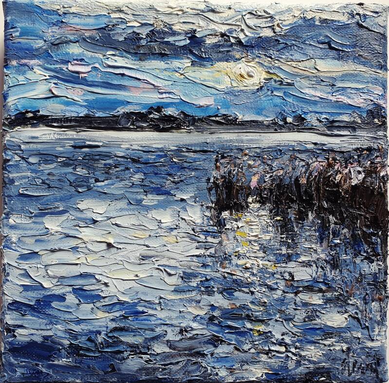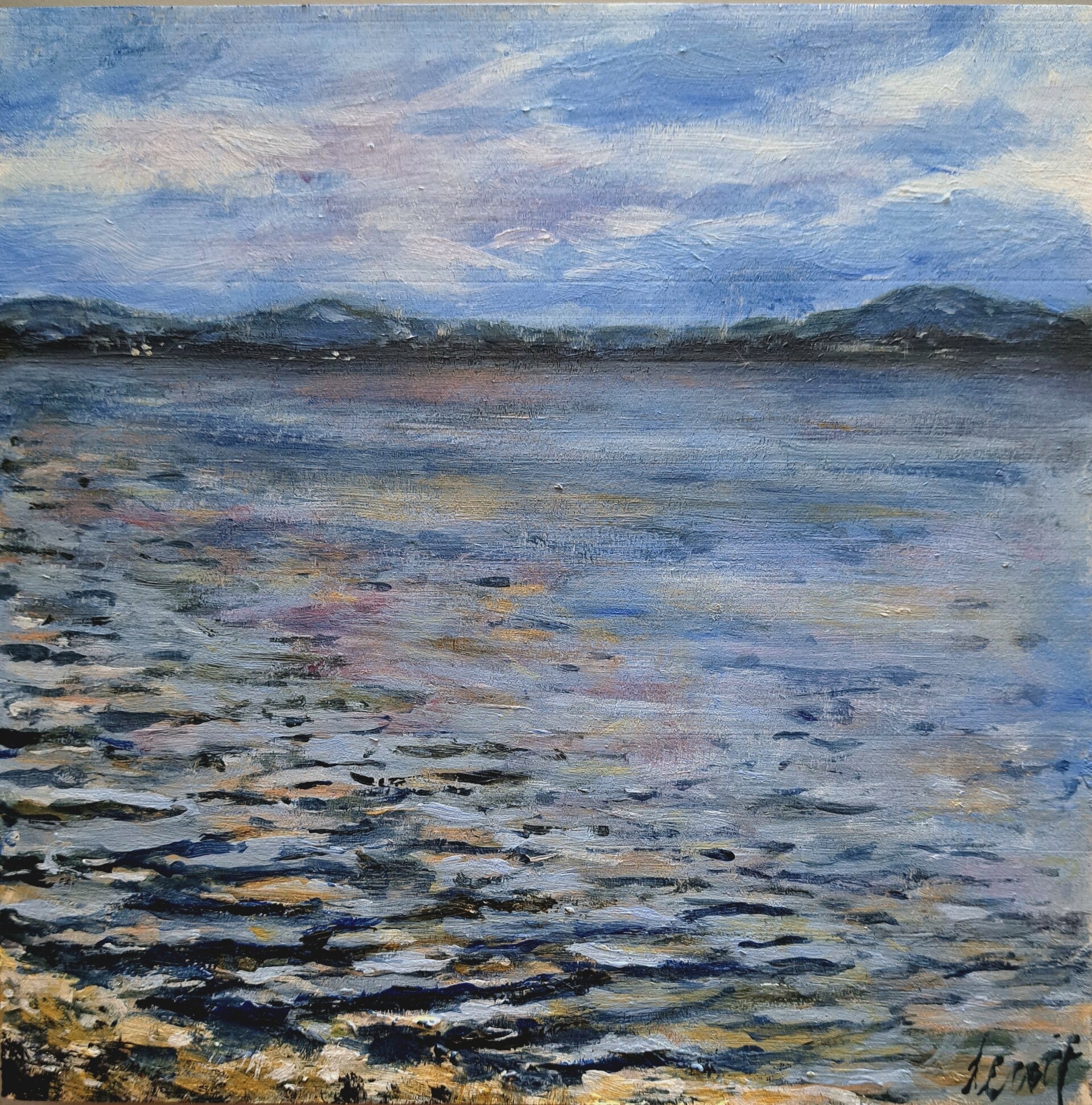 SOLD From the waterfront/Vanaf de waterkant-At the waterfront/ Bij de waterkant-Waterfront/Waterkant, acrylic paint on wood/ acrylverf op hout, 30,5x30,5 cm