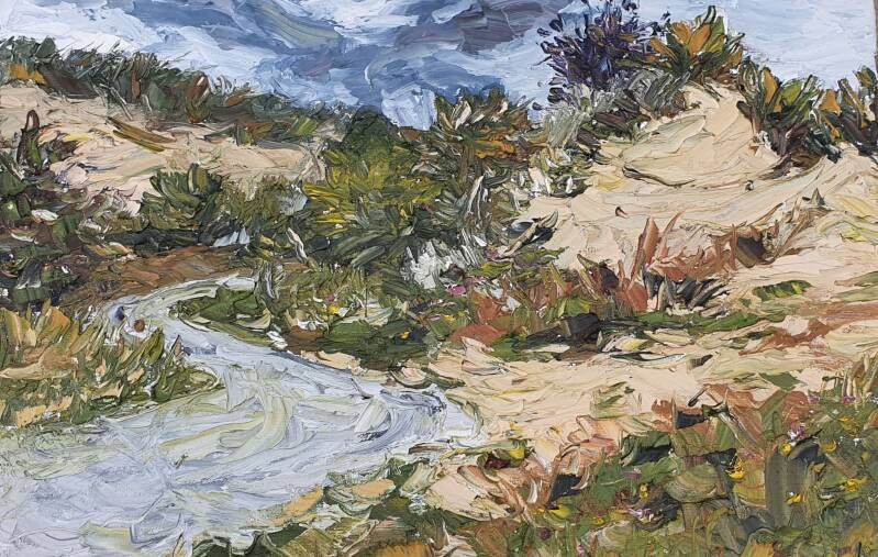 SOLD In the dunes, oil paint on linen/In de duinen, olieverf op linnen, 40x50 cm