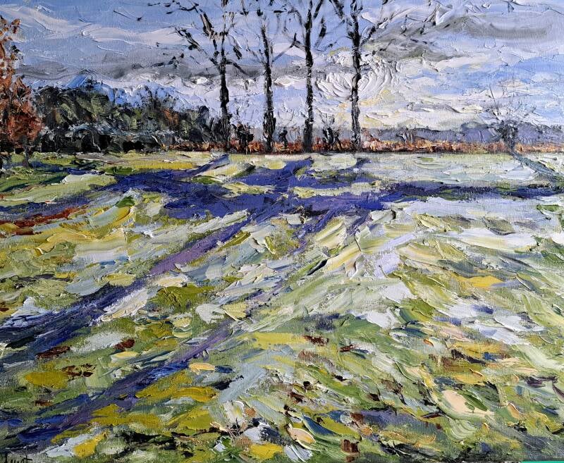 First snow has fallen, oil paint on linen/De eerste sneeuw is gevallen, olieverf op linnen 40x50 cm