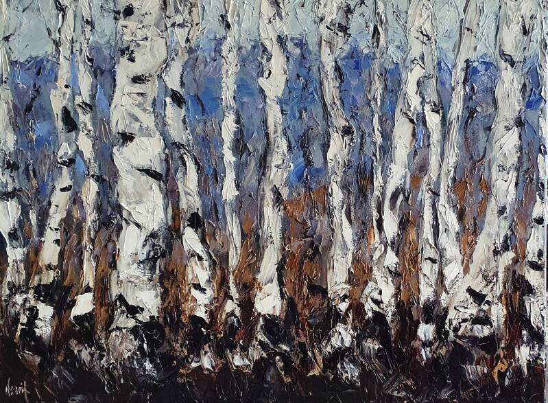 Birch forest, oilpaint on linen/Berkenbos, olieverf op linnen, 60x80 cm