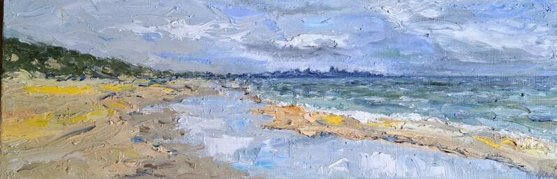 SOLD Silence before the storm, oil paint on linen, /Stilte voor de storm olieverf op linnen, 20x60 cm