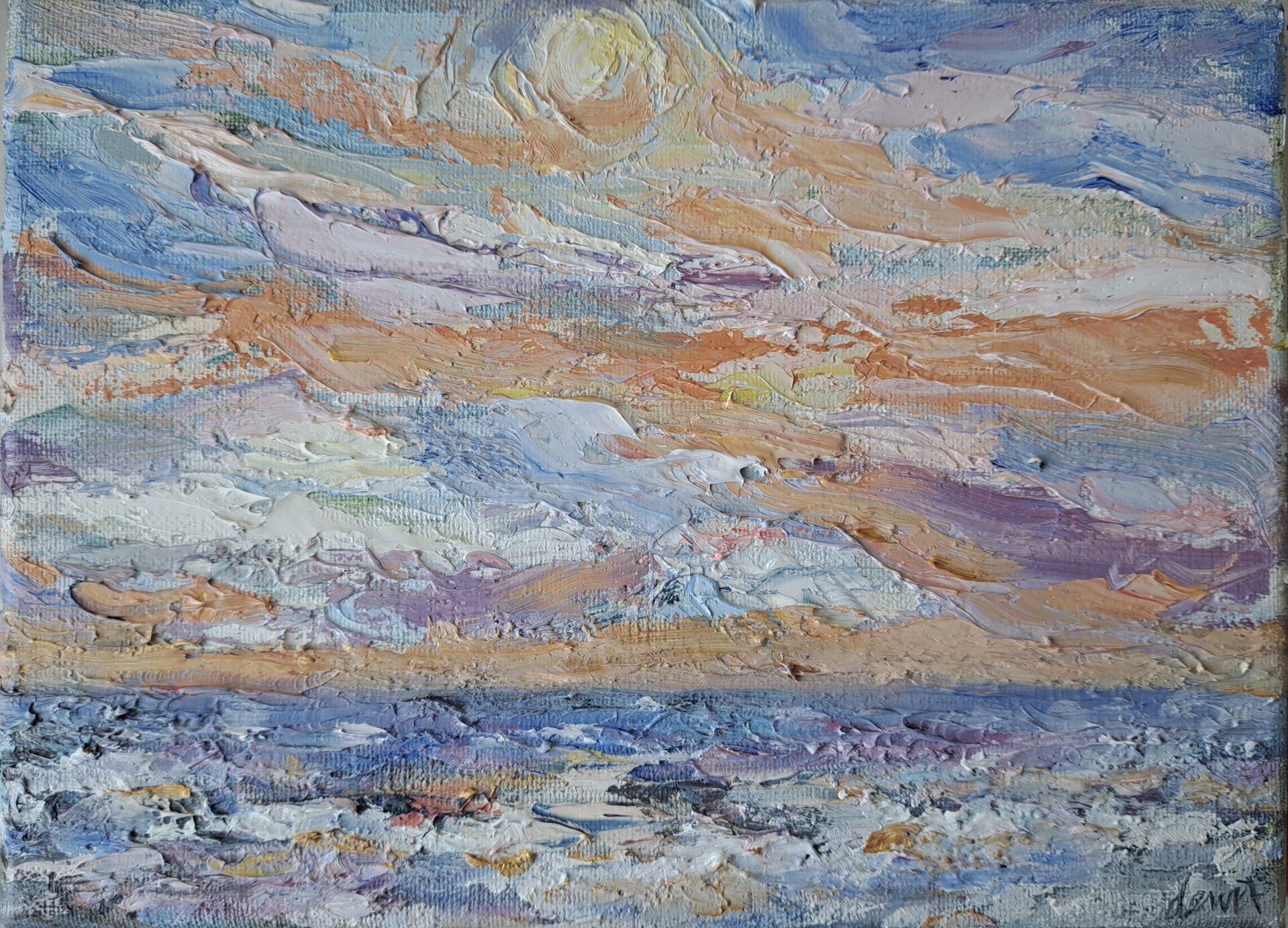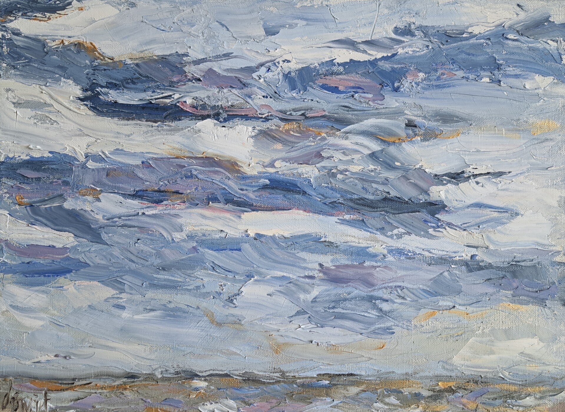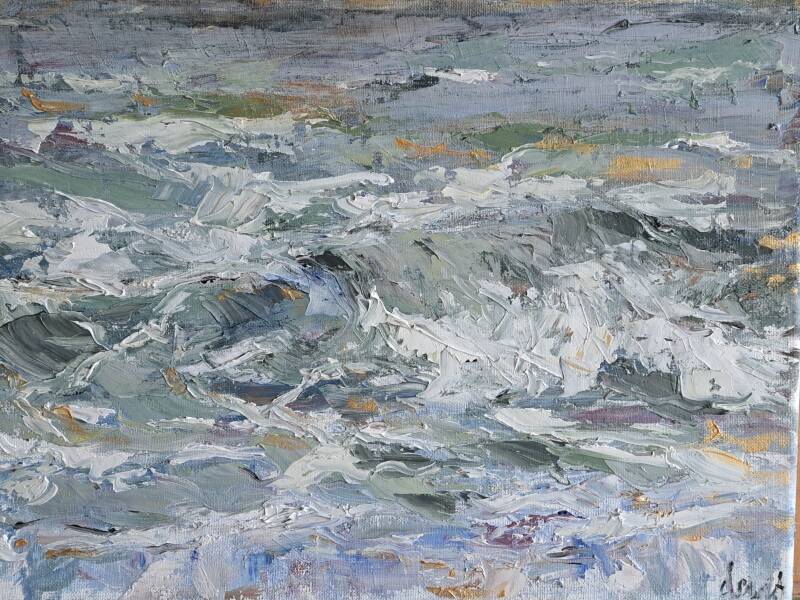 SOLD The sea, oil paint on linnen, /de zee, olieverf op linnen 20x30 cm