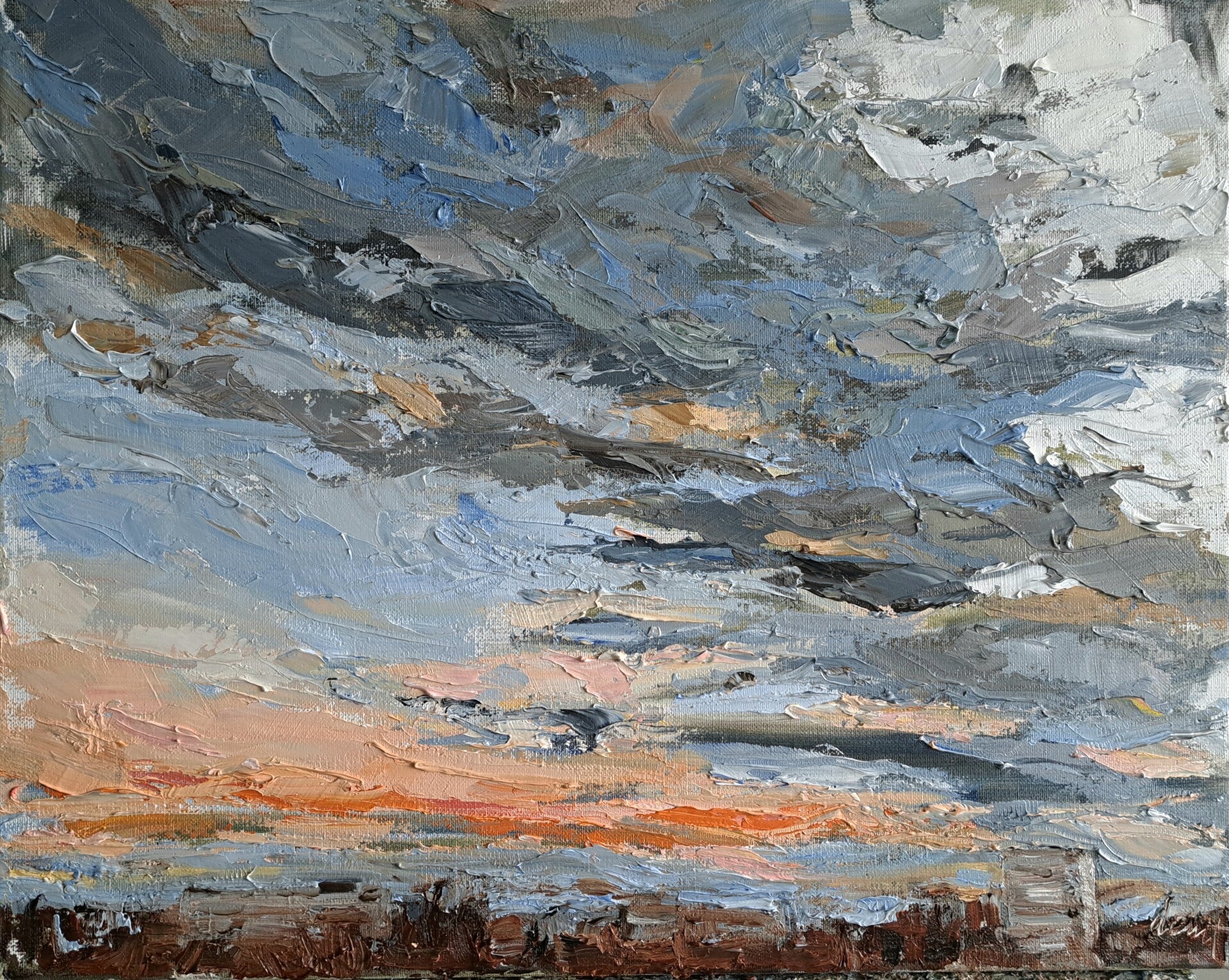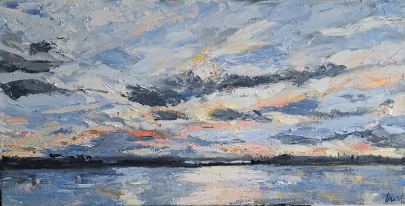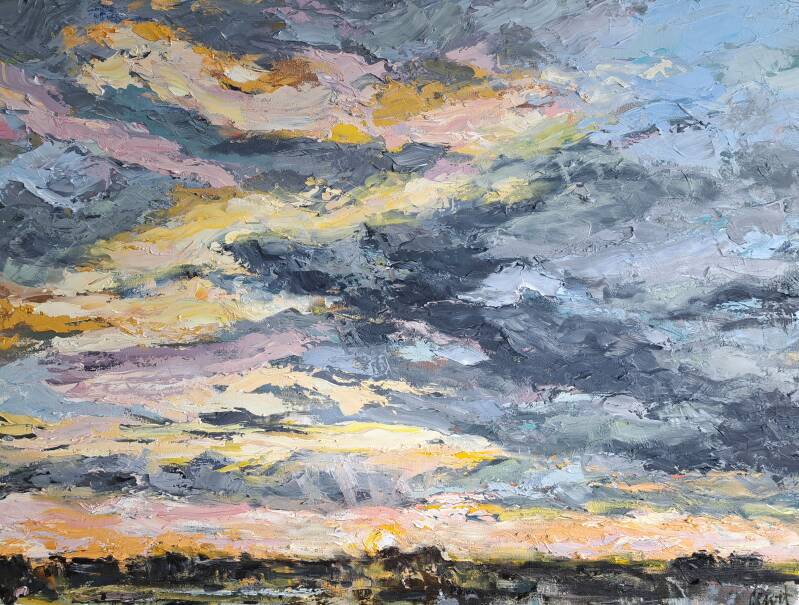 SOLD Summer evening sky, oil paint on linen/Zomerse avondlucht olieverf op linnen, 60x80 cm