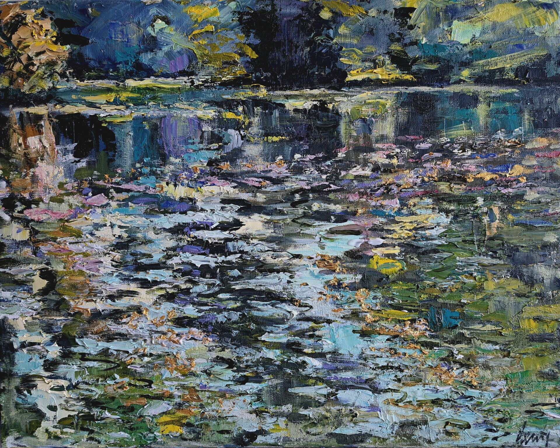 Multicolouredness/ veelkleurigheid - Babbling lake/ kabbelend meer - SOLD It is a cloudy day/ het is een bewolkte dag - SOLD Foggy evening/ Mistige avond, acrylic paint on wood/ acrylverf op hout, 20x20 cm
