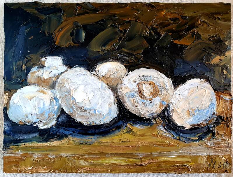 SOLD Beach treasures: Stones, oil on panel/Strandvondst: Stenen, olie op paneel, 24x30 cm