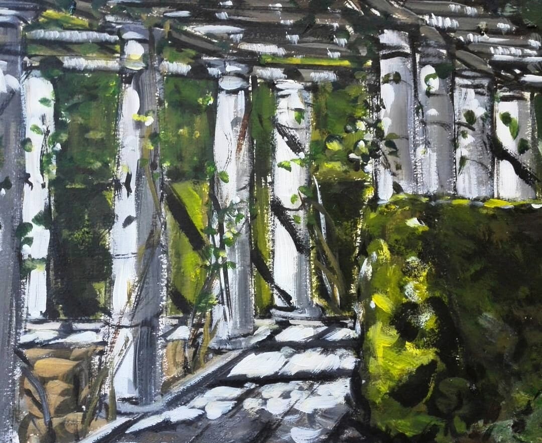 View trough the trees, acrylic paint on paper/ Zicht door de bomen, acryl op papier, 29x39 cm