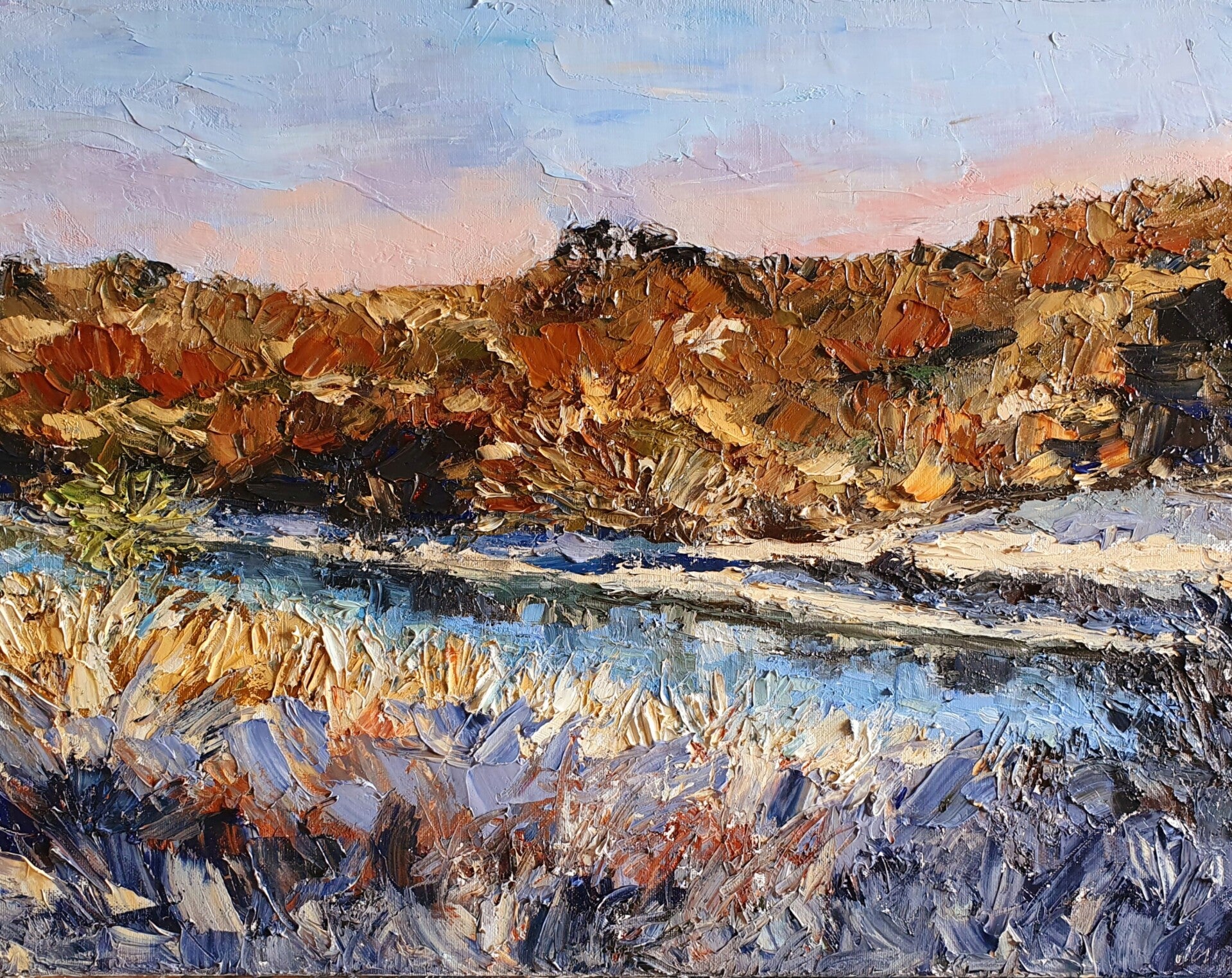 The night falls, oil paint on linen/De avond valt, olieverf op linnen, 40x50 cm